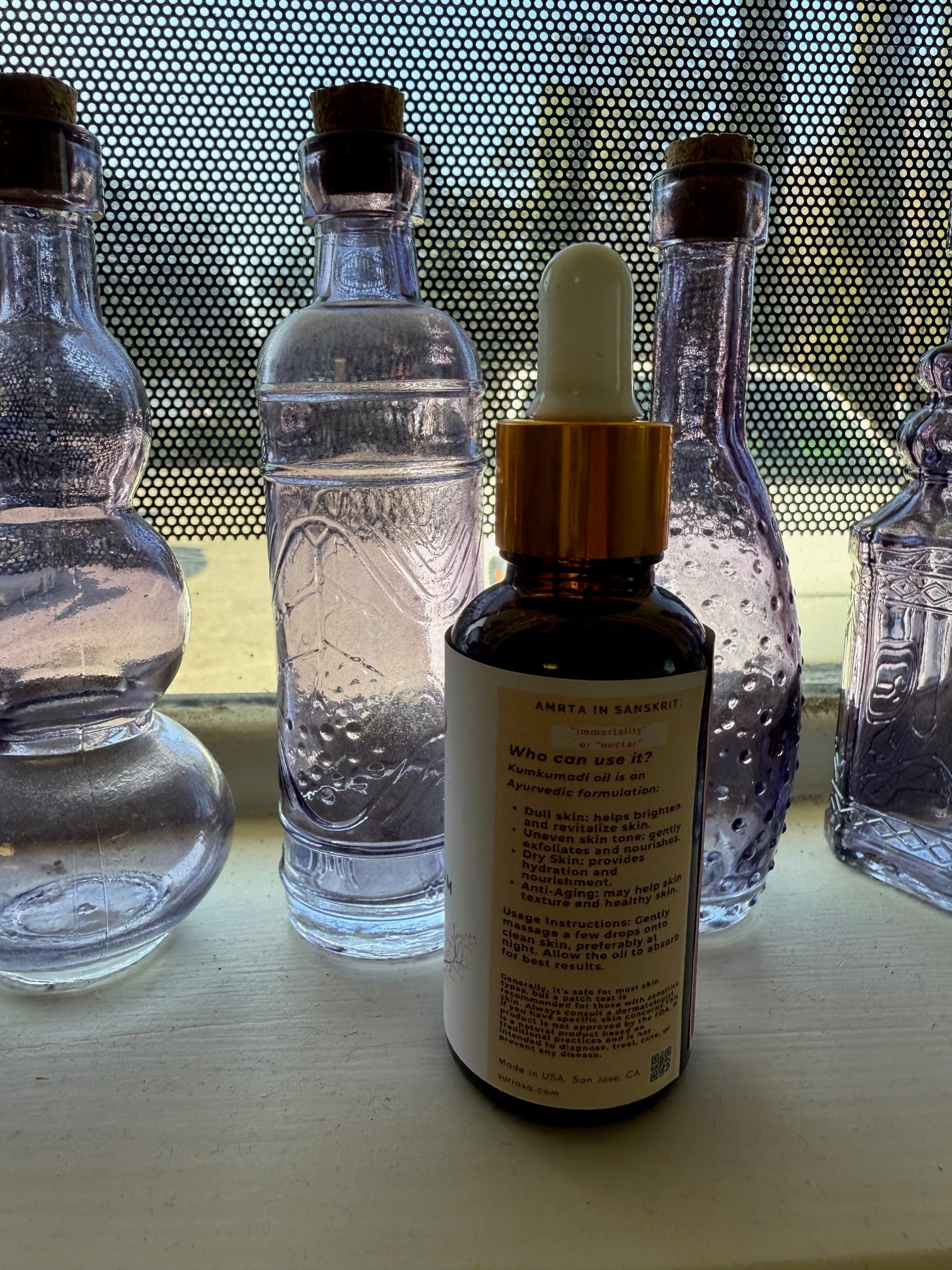 Experience the ancient secrets of Ayurveda with our Saffron serum, inspired by Ayurveda’s ancient Kumkumadi Oil formula, a luxurious elixir designed to brighten your skin and provide a radiant glow. Infused with the power of saffron, Indian Madder, and Indian Banyan tree, this oil works to smooth the skin. Vetiver and lotus are ingredients known to help promote a clear complexion, while licorice has a lot of scientific data for its anti-inflammatory and skin brightening properties. This all-natural formula is suitable for all skin types and is a must-have addition to your skincare routine for a youthful, radiant complexion.